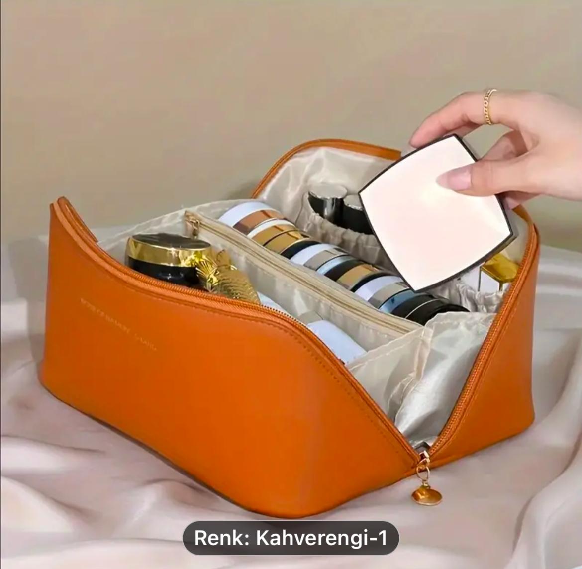 büyük boy deri makyaj çantası